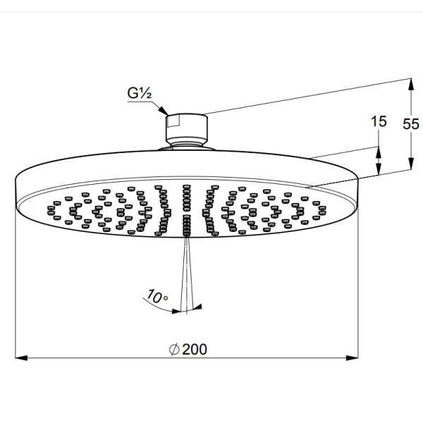 - Диаметр душевого диска: 200 мм