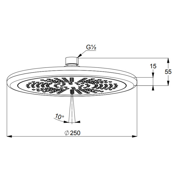 - Диаметр душевого диска: 250 мм