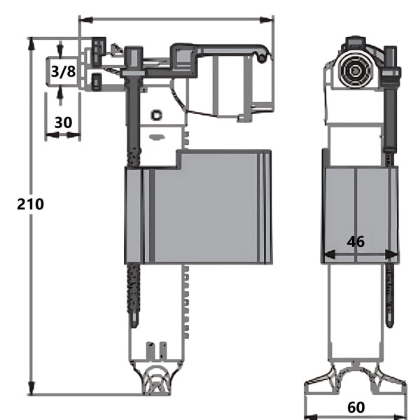 Наполняющий механизм Sanit 25.001.00.0000 с боковым подводом 3/8, 30 мм для инсталляции Sanit 510